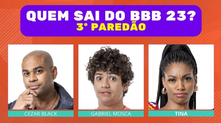 Cezar Black, Gabriel “Mosca” ou Tina: quem será o terceiro eliminado do Big Brother Brasil? Descubra nos resultados parciais quem sai e quem fica essa semana no BBB 23.
