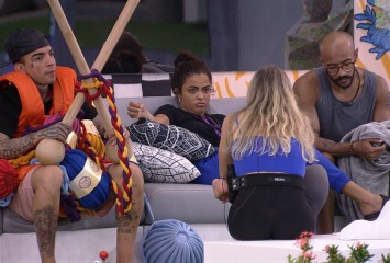 Na área externa, brothers conversam sobre a decisão do grupo de não conversar com Cristian sobre...
